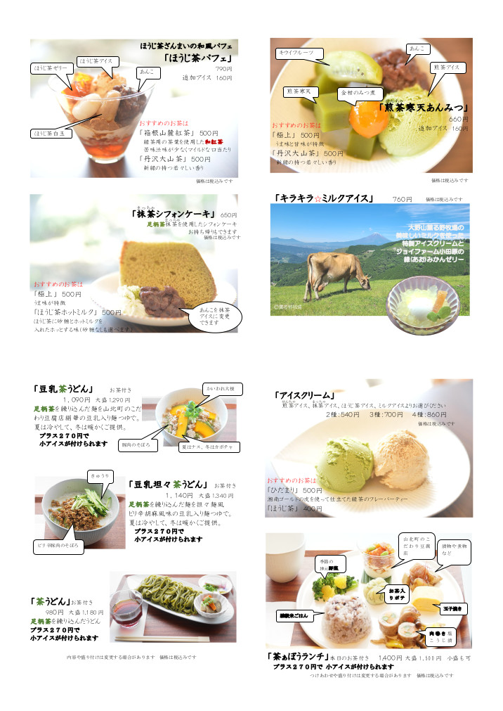 神奈川県の西にある丹沢山地周辺で栽培収穫し製茶された足柄茶を、足柄平野とその周辺で採れた産物とともに、足柄茶の地元でより多くの方にゆっくりと味わっていただくためのお店です。